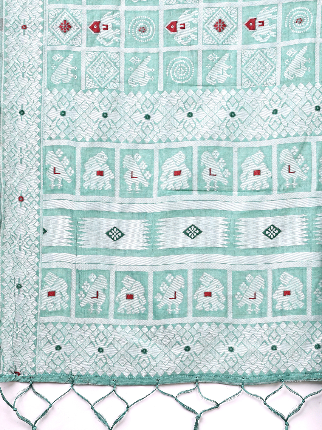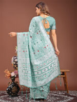 Classic Sea Green Linen Cotton Saree – Traditional with Modern Touch