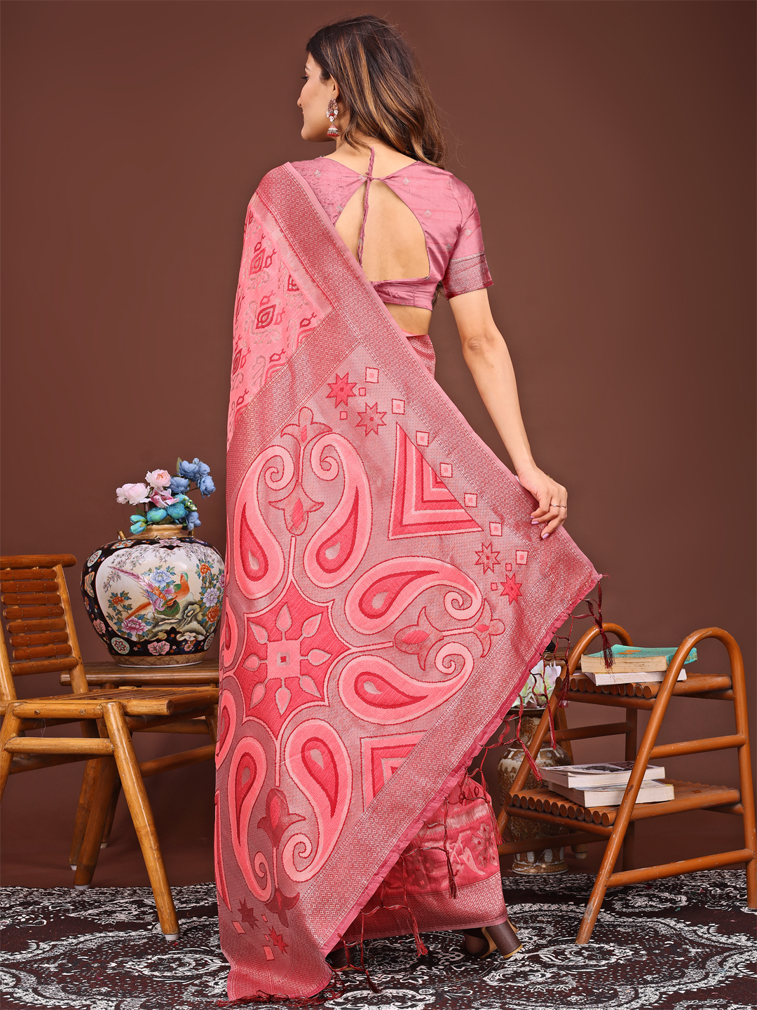 Handcrafted Peach Linen Cotton Saree – Breathable & Graceful