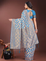 Sky Blue Linen Cotton Saree with Subtle Zari Border – Soft & Breathable Fabric
